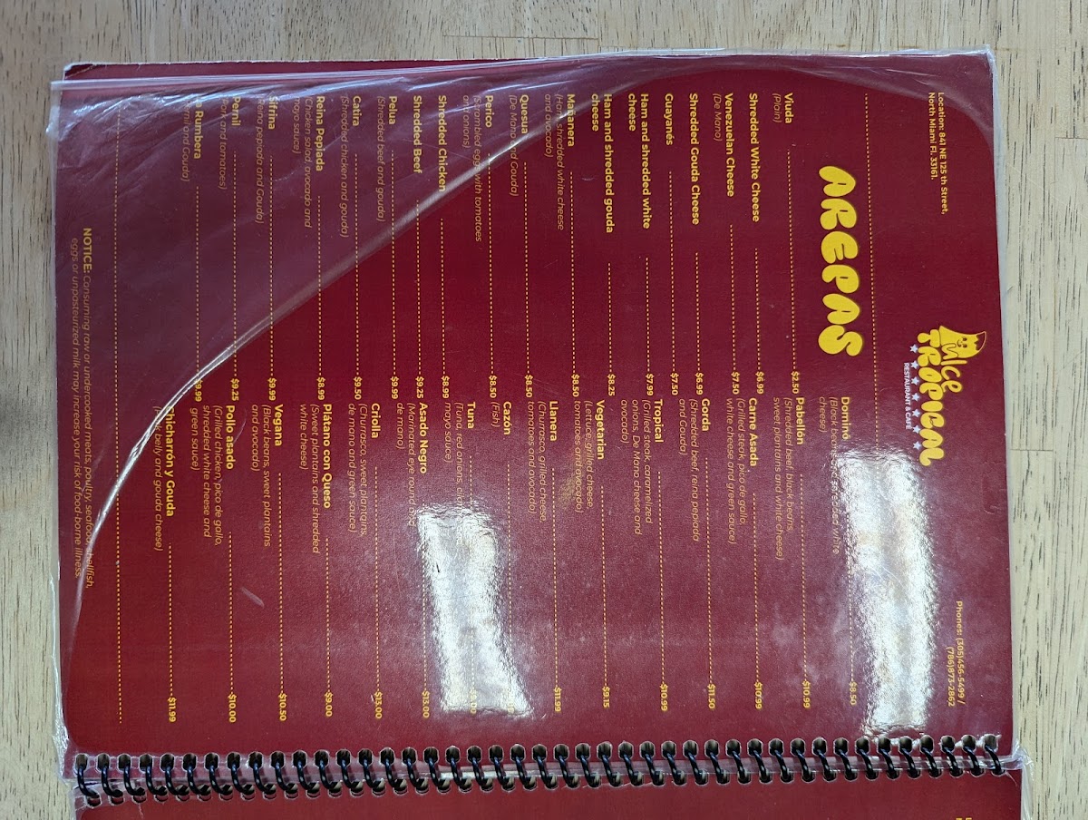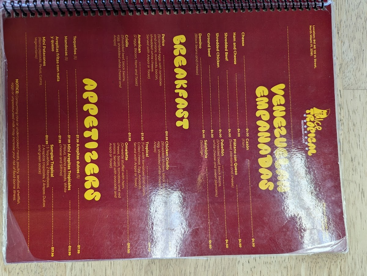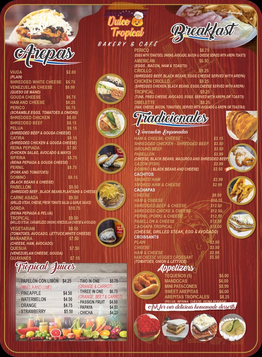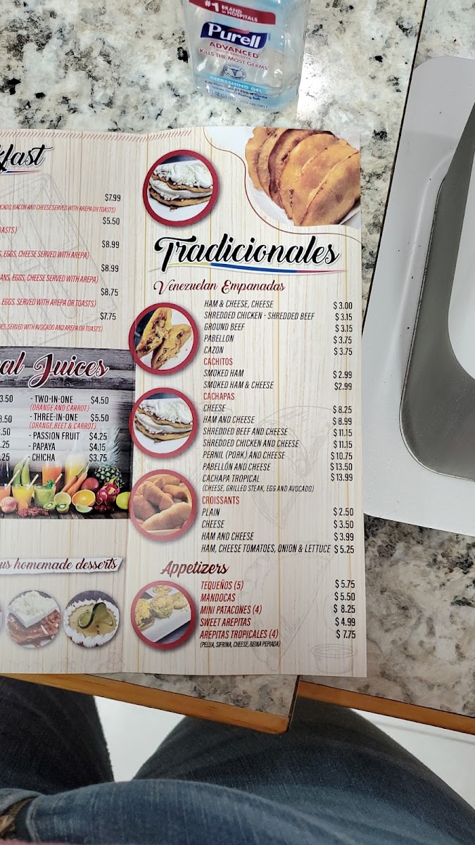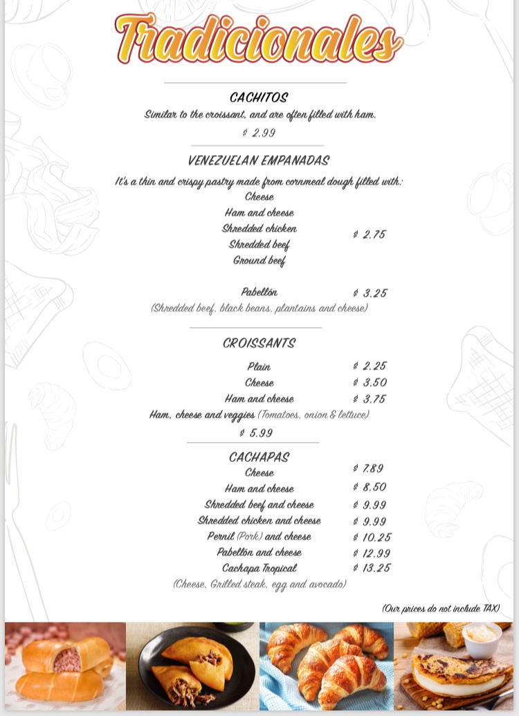 Includes 5 tequenos, 2 mandocas, 2 arepitas dulces, 2 arepitas tropicales and green sauce.
